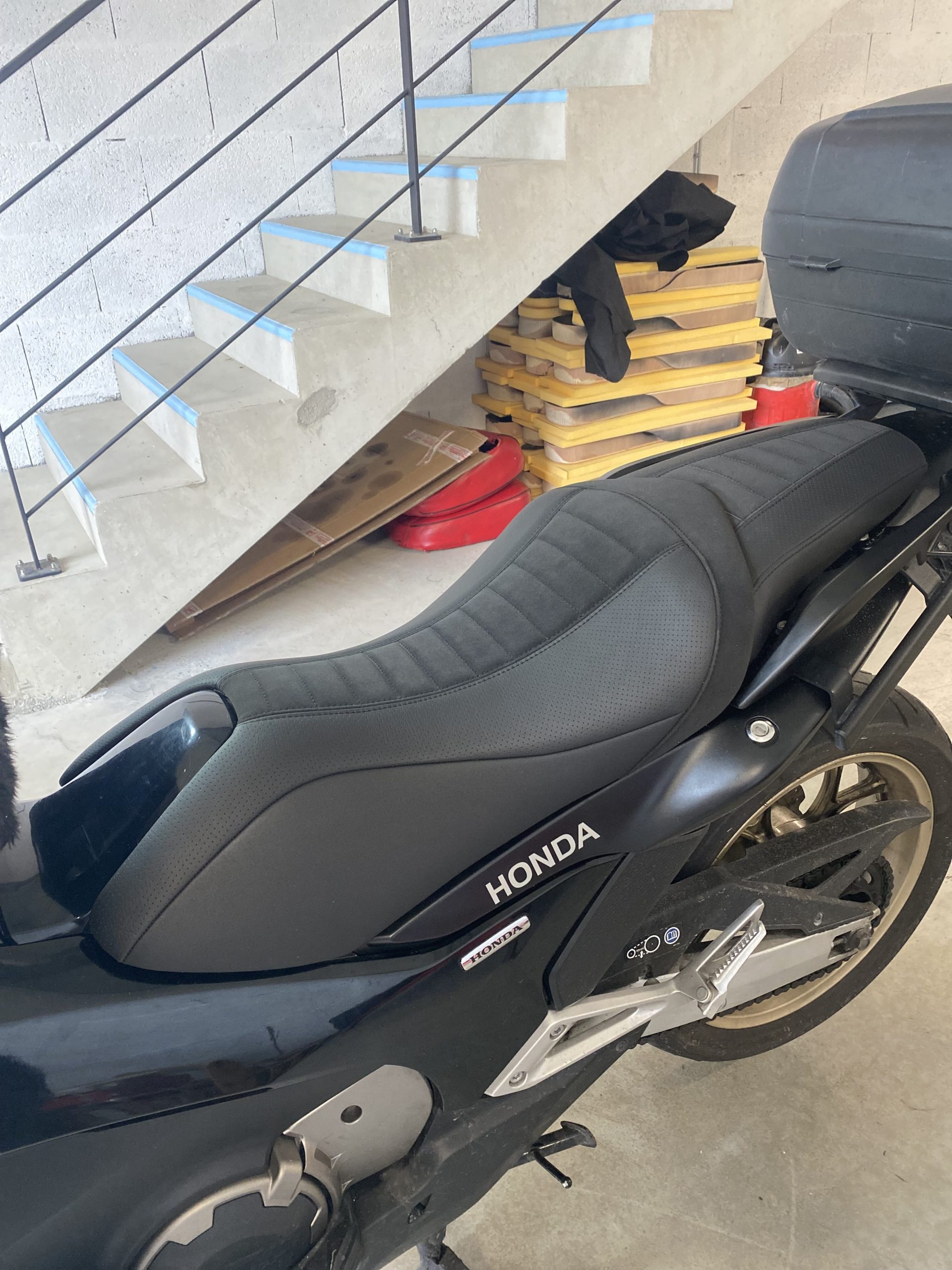 Selle confort et personnalisée pour ce scooter HONDA, avec mousse confort Bultex pour l’assise pilote, un nouveau design des garnitures pilote et passager avec un mariage de différents types de simili moto pour marquer l’identité de la selle et du scooter.