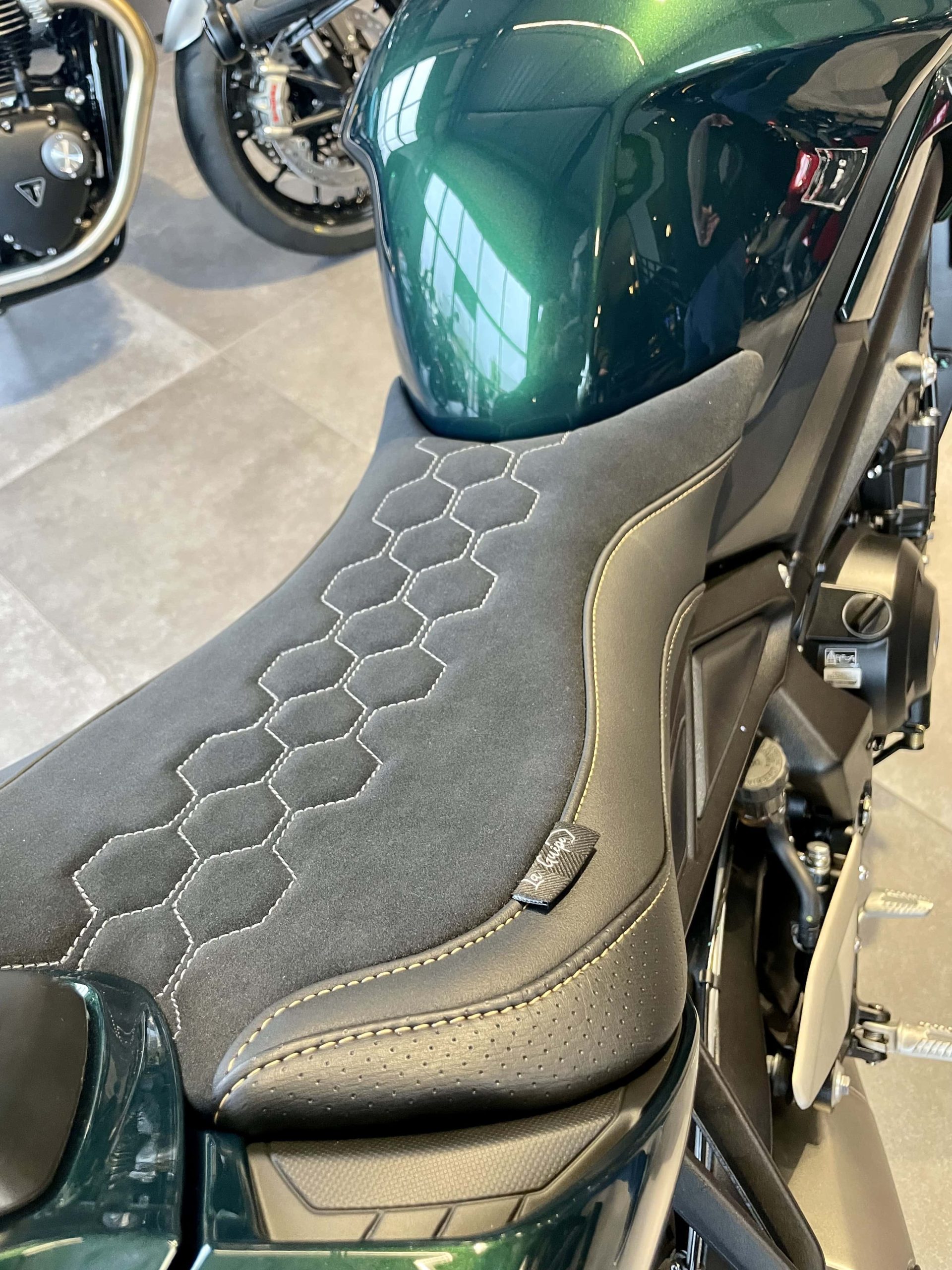 Confection d’une garniture sur mesure personnalisée à partir d’un nouveau design home made by Sellerie La Guêpe avec nid d’abeille.